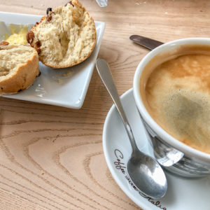 Callanderissä pysähdyttiin kahville ja skonsseille. Vaatekaupan yläkerrassa oli viehättävä kahvila. Tämä kylä tai kaupunki oli tyypillinen yhden pääkadun varteen rakentunut. Liikennevalot, mutta vähän liikennettä. Elinvoimaisen näköinen.