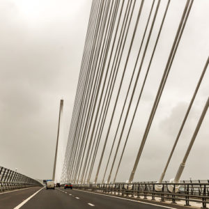 Pysähdyimme Anstrutherissa. Kaunis, pieni satamakaupunki. Värikäs talorivi katsoi merelle, jossa pienveneet olivat laskuveden vuoksi maalla. Tunnin päästä, kun lähdimme pois, veneet olivat saaneet suolaista vettä alleen. Koko matka oli alavilla mailla, jossa oli paljon viljelystä. Välillä tie poikkesi lähelle meren rantaa ja näkyi öljynporauslautan torneja. Forth joen ylittää Queensferry Crossing Bridge ennen Edinburgia. Se on kaunis maamerkki katsoi sitä tieltä tai lentokoneesta.